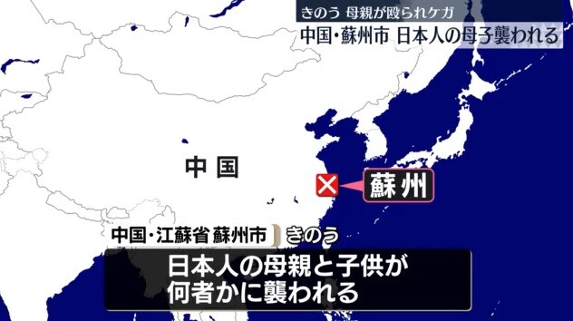 中国でまた日本人母子が襲われる 石破自民党「中国は安全安心の国」